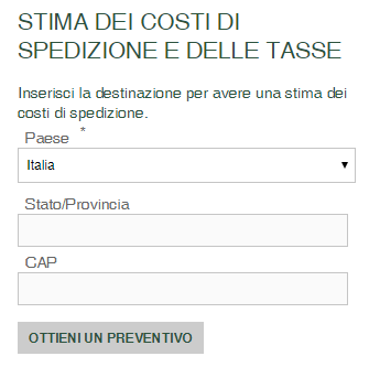 Per stimare i costi di spedizione, è a disposizione un comodo tool di stima all'interno del tuo carrello: